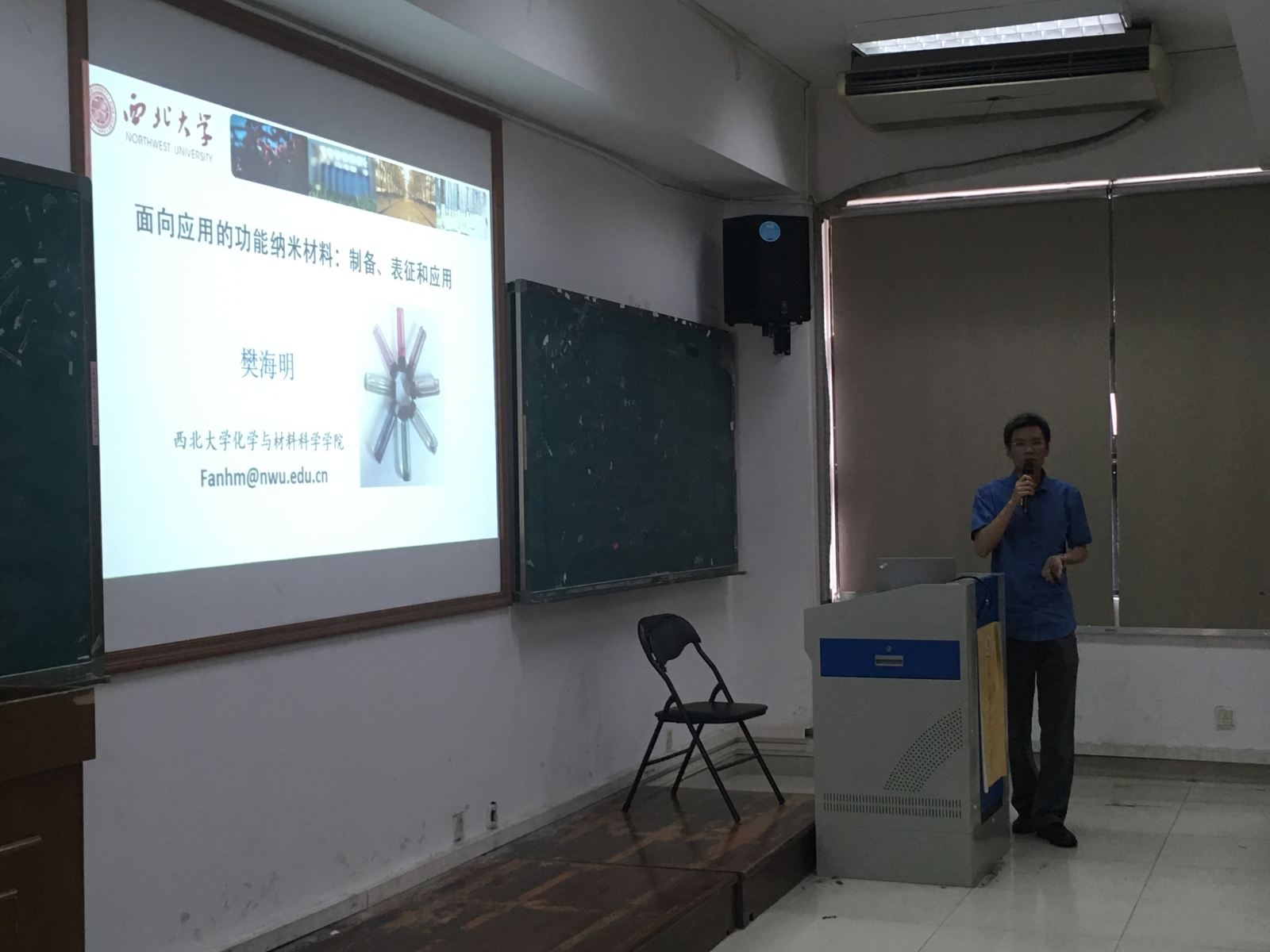 4月26日上午,西北大学化学与材料科学学院樊海明教授应bet36365娱乐场的邀请,在工学三号馆208室进行了一场题为《面向应用的功能纳米材料:制备、表征和应用》的主题学术报告,到场的有来自各学院的老师和同学。
