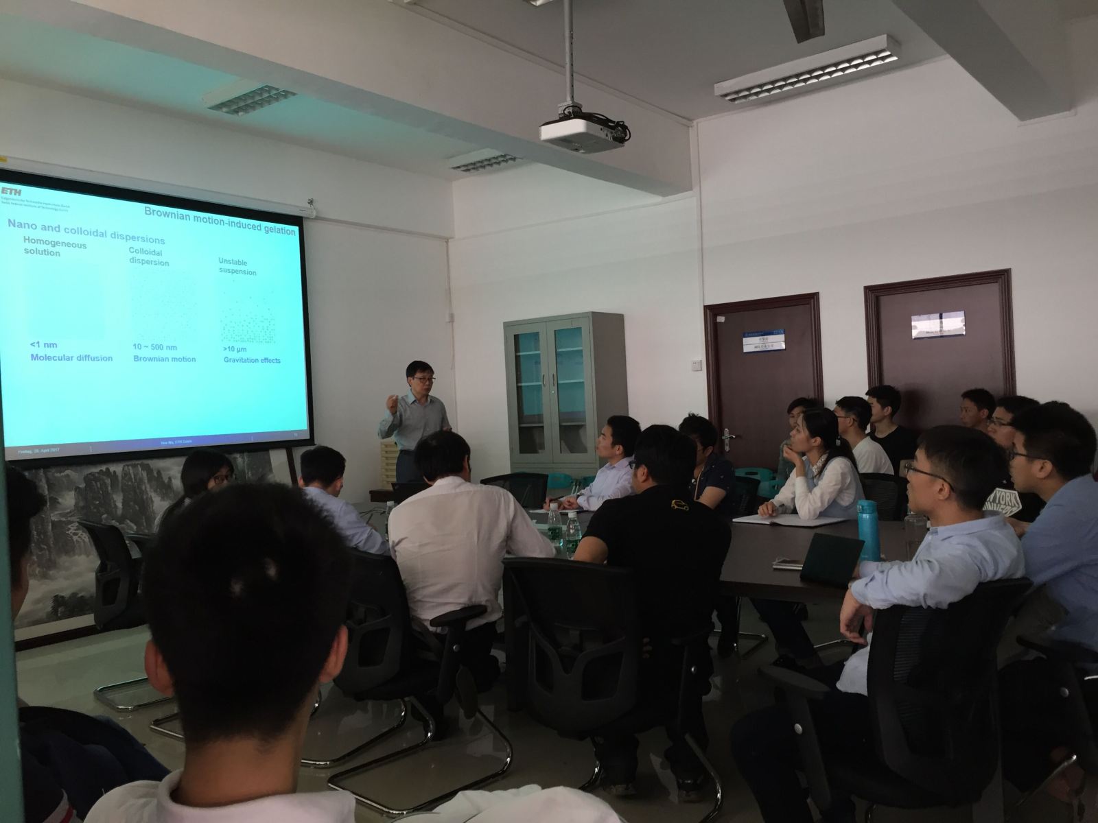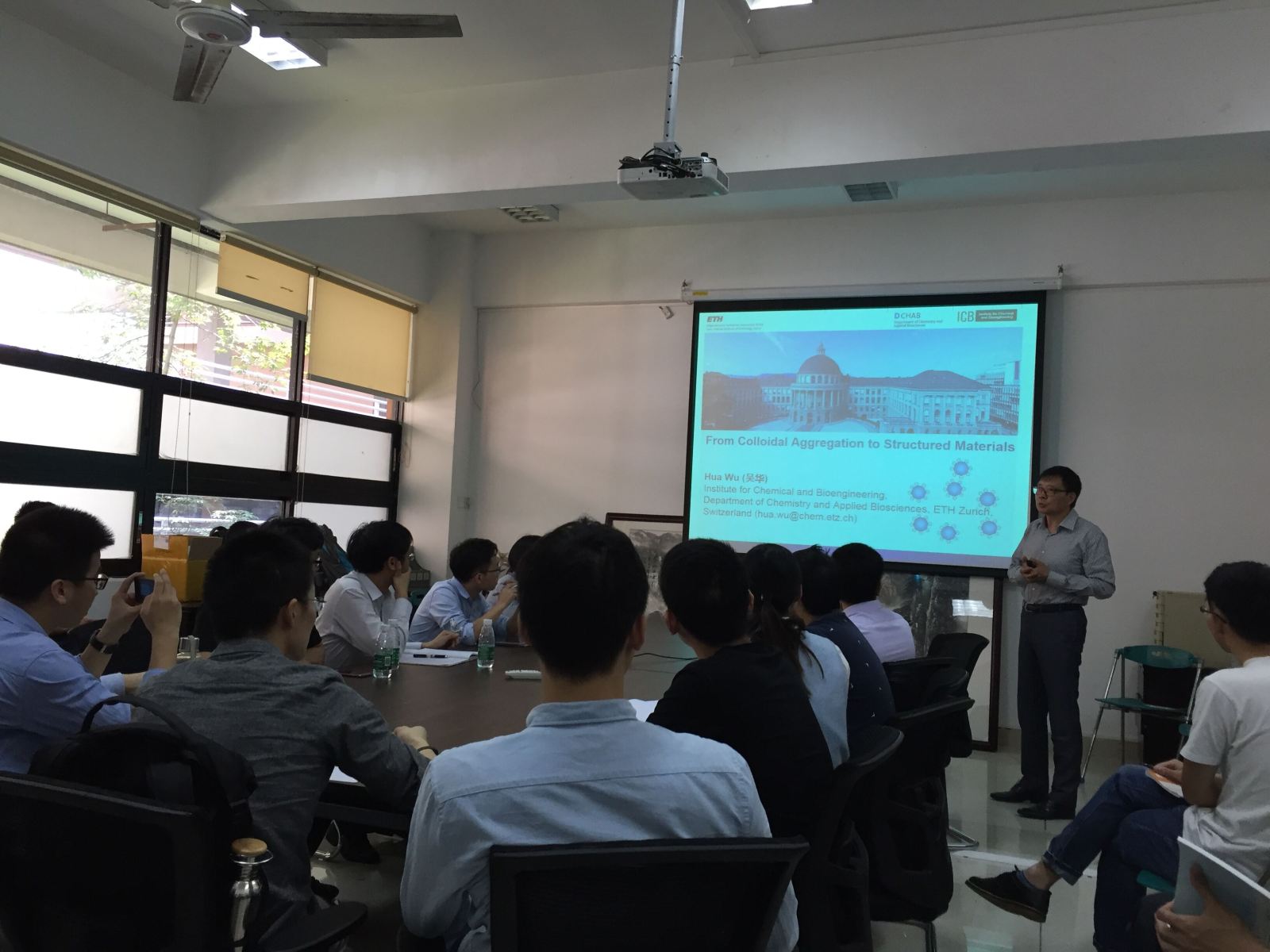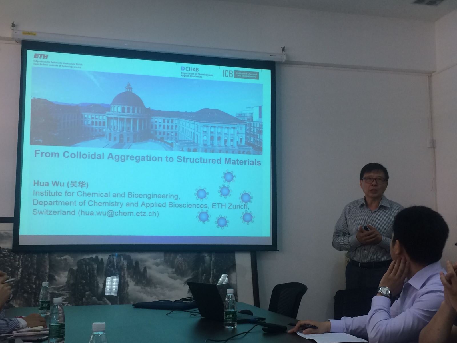 4月28日上午,瑞士联邦苏黎世理工学院(ETH)吴华教授应bet36365娱乐场的邀请,在工学三号馆221室举办了一场“从聚合物胶体团聚到结构材料”的精彩报告,报告由陈颖教授主持,现场有来自华南理工大学化学与化工学院张心亚研究员和研究生,以及我校材能、轻化学院的老师和同学们。