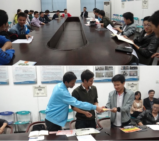 会上,每个部门的部长和干事们都对自己前半学期的工作进行了总结,并对研会今后的工作提出了不少建议。 随后,研会主席李昔强同学对研会的总体工作进行了总结。期间,吴其光老师不时对各部门的工作进行点评,特别是对我院研究生代表队在今年研究生运动会中取得的巨大进步表示由衷的赞许,同时也对各部门存在的不足以及今后的工作计划提出了建议。最后,会议对在今年研究生运动会上取得突出成绩的同学进行表彰与颁奖。
