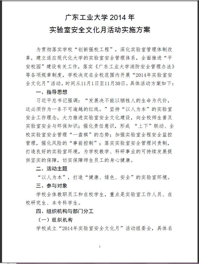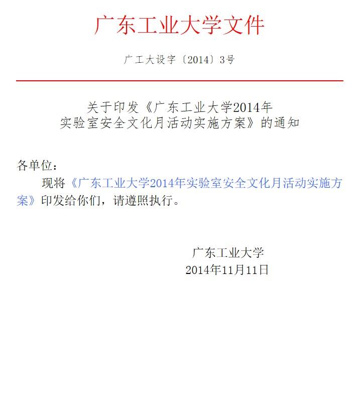 广工大设字【2014】3号(关于印发《广东工业大学2014年实验室安全文化月活动实施方案》的通知